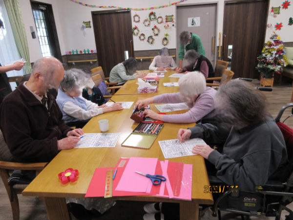 カレンダー作りで塗り絵を楽しんでいただきました。